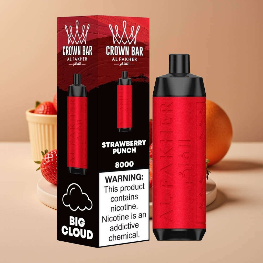 Al Fakher Crown Bar 8000 Crystal Disposable Vape Aardbeien Punch – 18ml, 5mg, USB-C, 600mAh