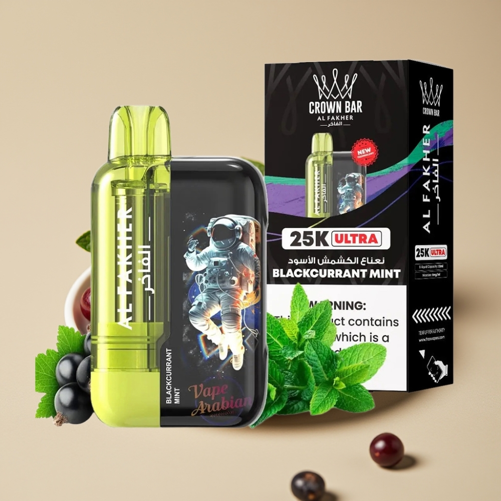 Al Fakher Crown Bar Ultra 25K Wegwerp Vape Zwarte Bes Munt 22ml 50mg